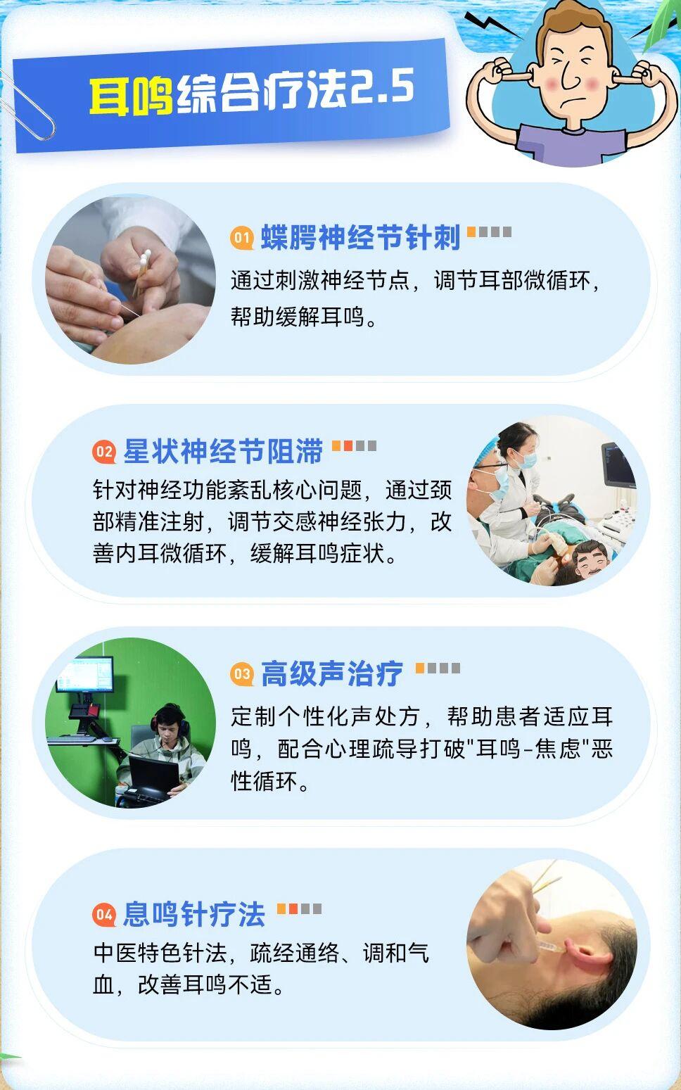 “耳鸣综合疗法2.5”,不是单一手段,而是中西医结合、多维度发力的“组合拳”,针对耳鸣根源精准施策。